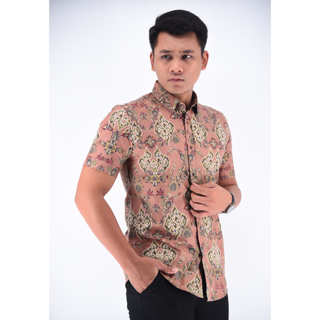 Kemeja Batik Lengan Pendek Uassb53 081 Brown Shopee Malaysia