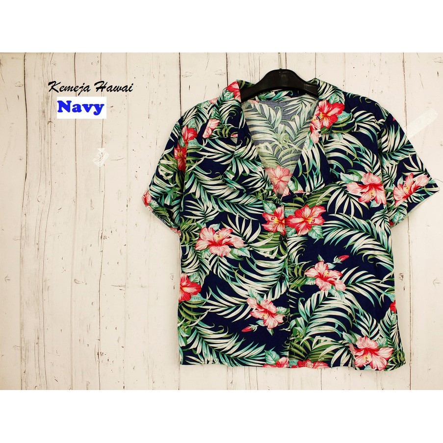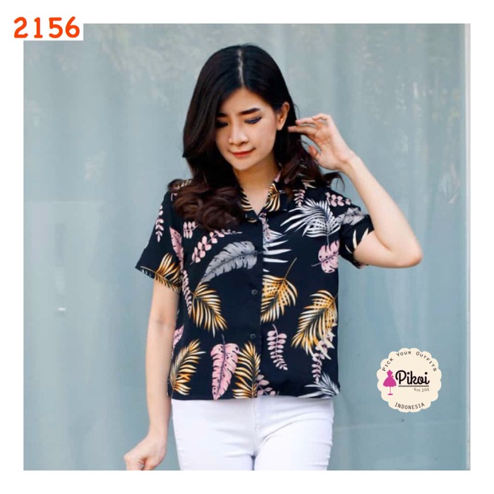 Fortglass Monalisa Daun Bunga Baju Pantai Wanita Kemeja Hawai Bali Cewek Lengan Pendek Motif Shopee Indonesia