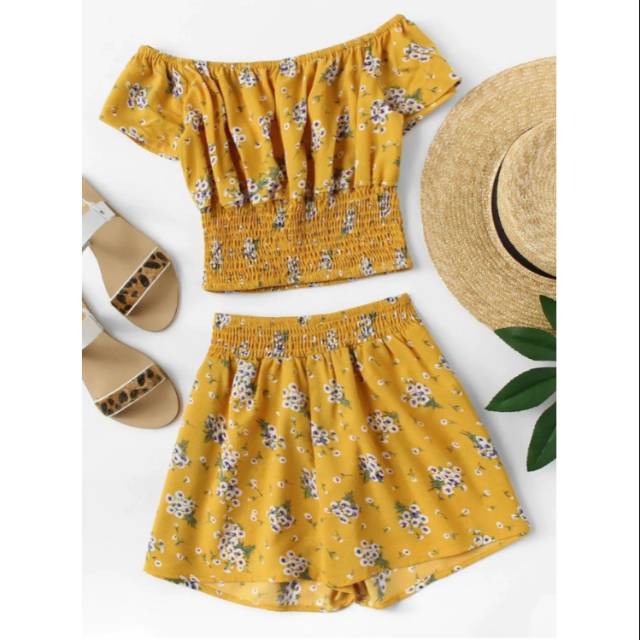 Terusan Wanita Baju Pantai Casual Flower Cullote Jumpsuit Shopee Indonesia