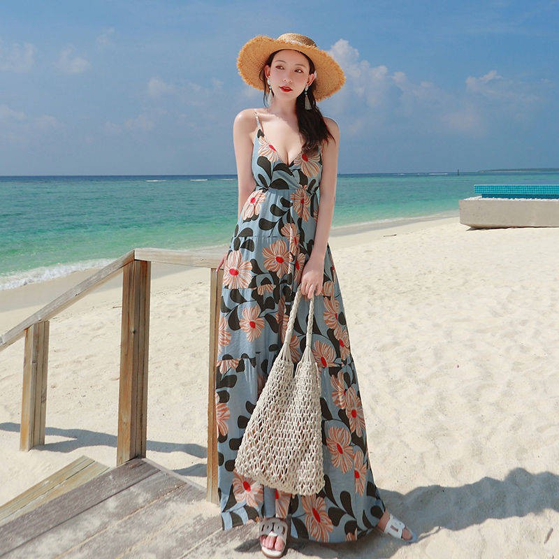 Pakaian Pantai Wanita Maldives Seksi V Neck Tepi Pantai Gaya Percutian Pantai Skirt Thailand Bohemian Skirt Suspender Dress Wanita Shopee Malaysia