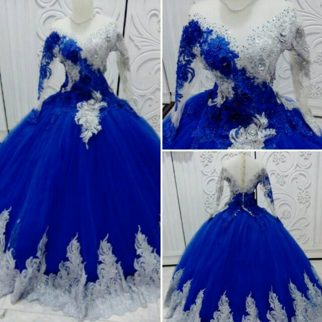 Gaun Pengantin Barbie Biru Elektrik Kombi Silver Navy Silver Shopee Indonesia