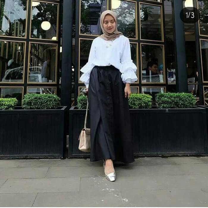 Baju Putih Rok Hitam Cocok Dengan Jilbab Warna Apa