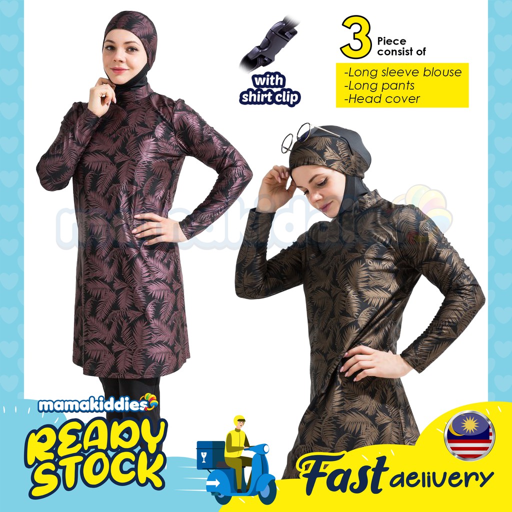 New Arrival Women Muslimah Swimming Suit Swimwear Baju Renang Hawaii Design Shopee Malaysia