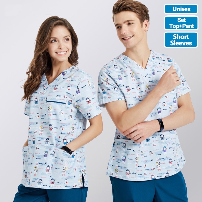 Anno Baju Perawat Seragam Perawat Lengan Pendek Scrub Medis Set Pakaian Bedah Pakaian Dokter Jas Bedah Gown Shopee Indonesia