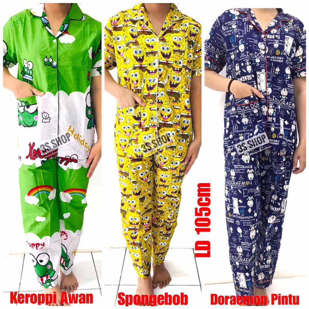 Baju Tidur Piyama Wanita Dewasa Pp Motif Karakter Keroppi Bahan Katun Lazada Indonesia