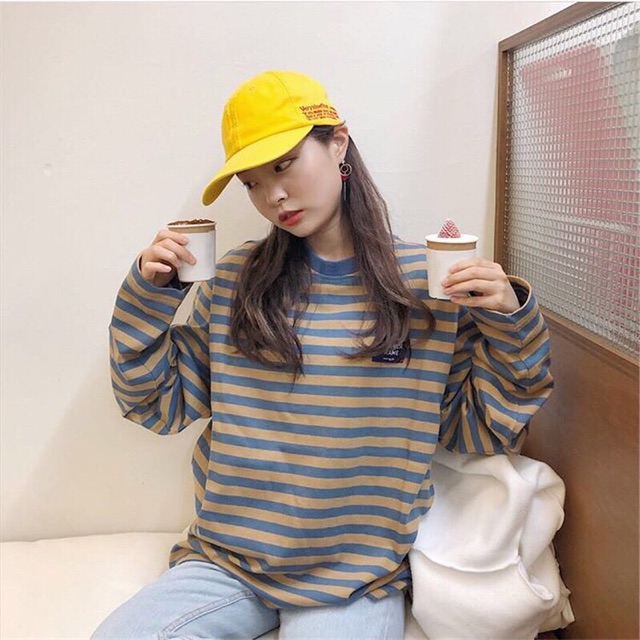 Kaos Stripe Korea Style Kaos Stripe Oversized Kaos Stripe Strip Salur Belang Garis Garis Shopee Indonesia