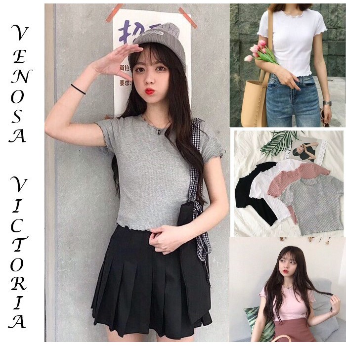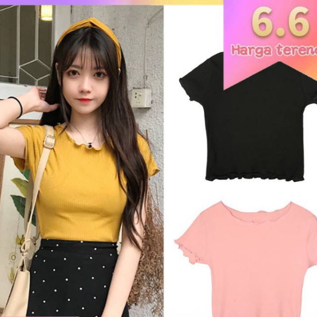 Atasan Wanita Tshirt Rajut Kriwil Pendek Crop Kriwil Pendek Baju Wanita Sweater Wanita Lazada Indonesia