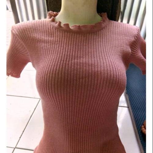 Baju Kaos Wanita Fashion Top Rajut Kriwil 8w Bhn Rajut Halus Stretch Fit L Shopee Indonesia