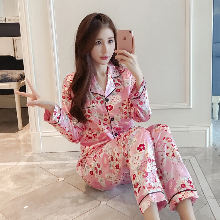 Autumn Women Pajamas Faux Silk Sleepwear Satin Pajamas Set Long Sleeves Flower Print 2 Piece Homewear Summer Pajama New Pajama Sets Aliexpress