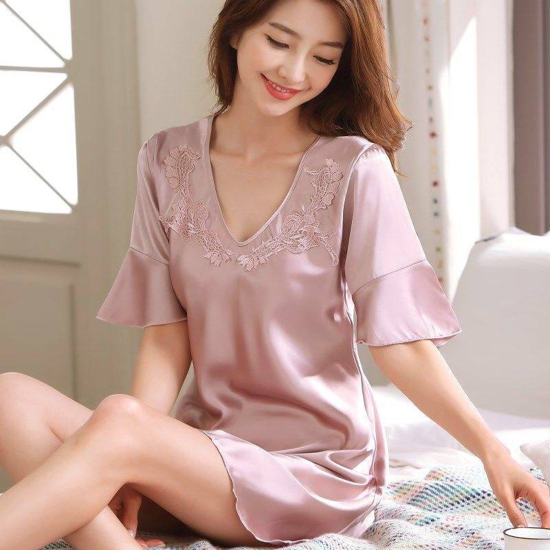 Baju Tidur Perempuan Baju Tidur Wanita Musim Panas Sutera Fesyen Seksi Renda Baju Tidur Lengan Pendek Bahagian Nipis Ukuran Besar Ais Sutera Baju Tidur Wanita Rumah Shopee Malaysia