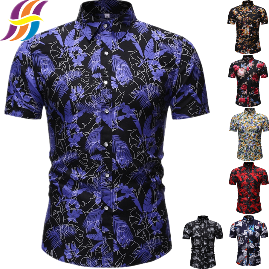 Hot15 Colors Men S Shirt Short Sleeve Men Kemeja Batik Floral Print Lelaki Baju Slim Fit Casual Men Shirts Shopee Malaysia