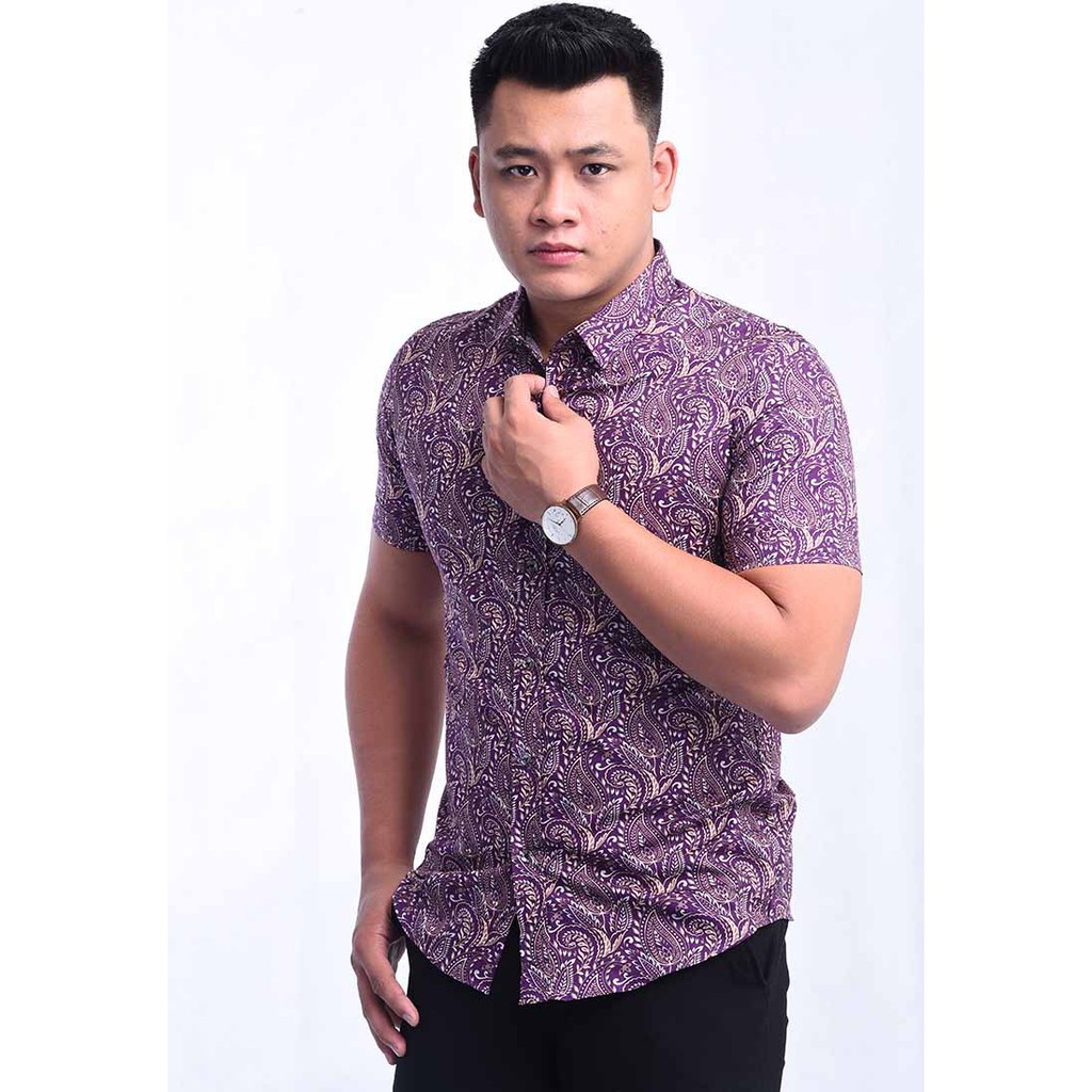 Kemeja Batik Lengan Pendek Ssb108 111 Purple Shopee Malaysia