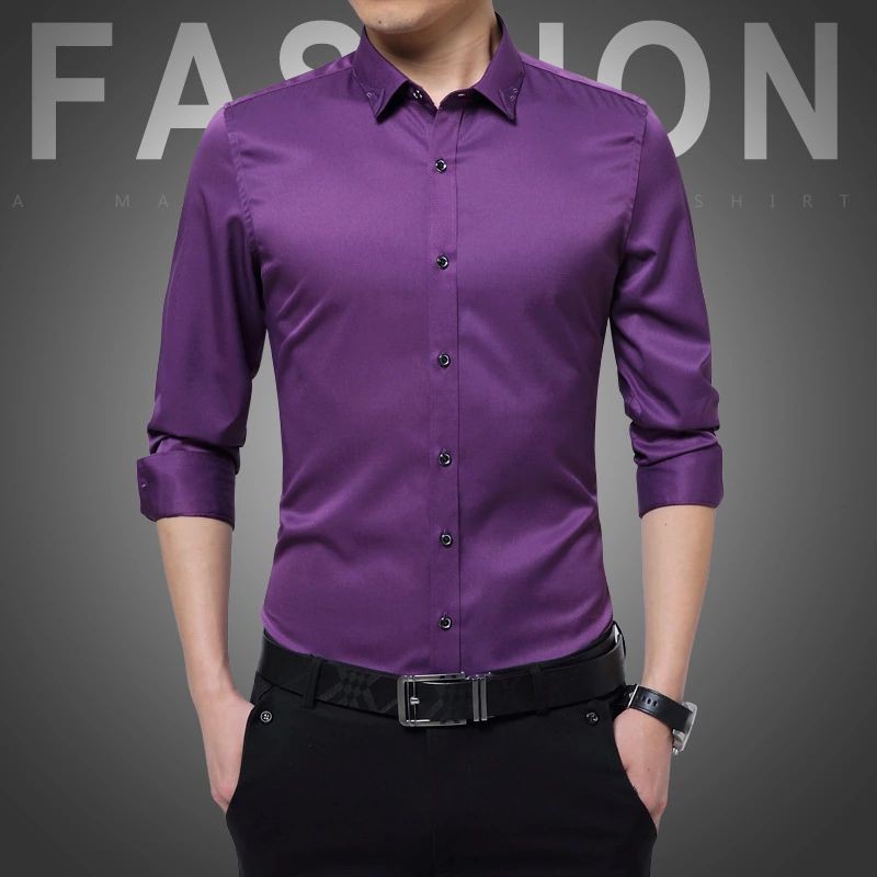 Ready Stock Summer New Purple Long Sleeved Shirts Fashion Casual Baju Lelaki Slim Fit Kemeja Lelaki Shopee Malaysia