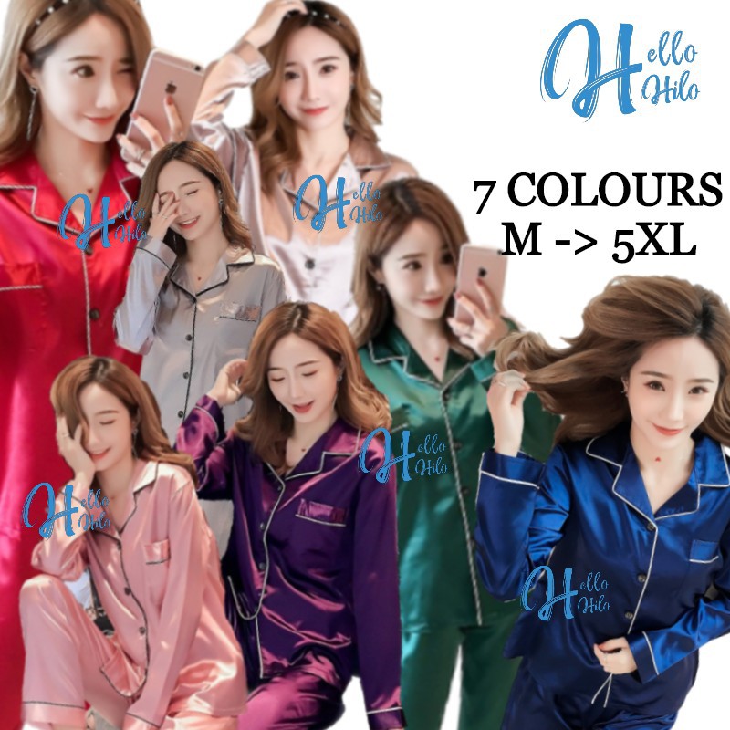 Hellohilo Tbtl Baju Tidur Kain Satin 1 Set Murah Selesa Dan Bergaya Kain Sejuk Baju Tidur Lengan Panjang Shopee Malaysia