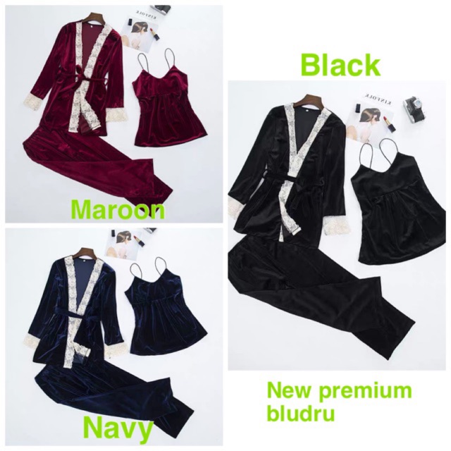 Jc Set Kimono Bludru 3in1 Import Piyama Wanita Kekinian Baju Tidur Import Shopee Indonesia