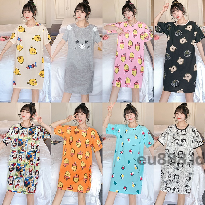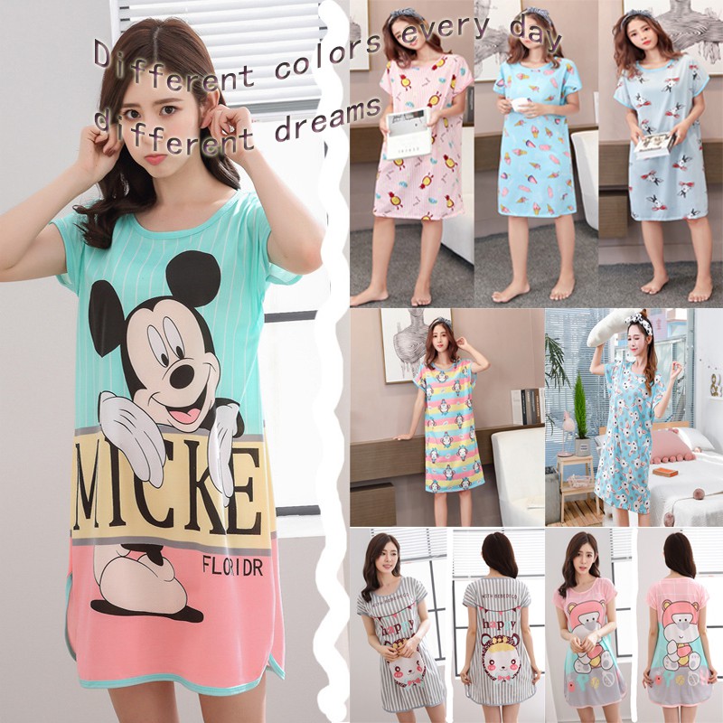 Wanita Versi Korea Dari Baju Tidur Katun Piyama Lengan Pendek Kartun Rok Panjang Longgar Shopee Indonesia