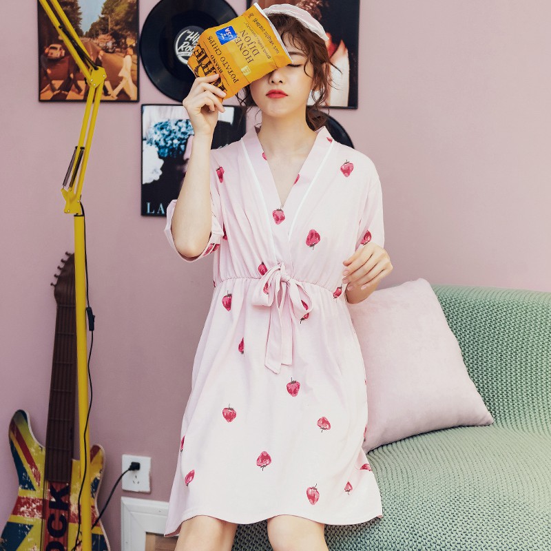 Kapas Baju Tidur Wanita Musim Panas Lengan Pendek Baru Katun Piyama Rok Kartun Gadis Manis Bisa Memakai Baju Tidur 17015 Baju Tidur Sleepshirts Aliexpress