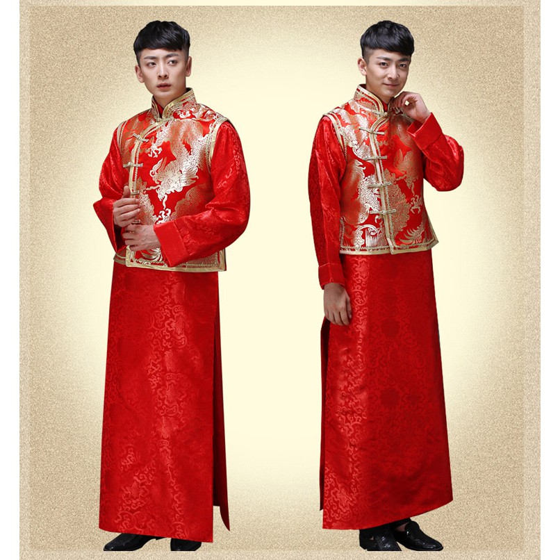 Merah Cina Pernikahan Pengantin Lelaki Jaket Manusia Jubah Tang Kostum Tradisional Cina Gaun Naga Pria Cheongsam Terbaik Kostum 90 Tops Aliexpress