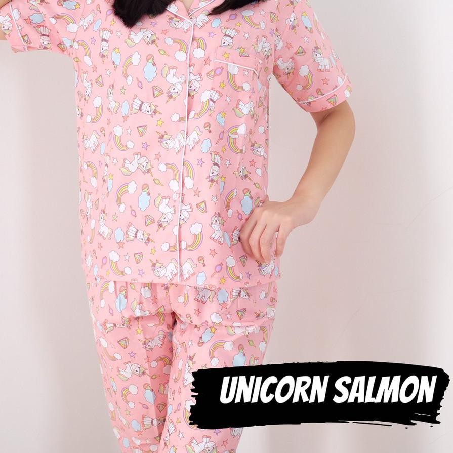 Isha Over Piyama Wanita Unicorn Salmon Cpj Baju Tidur Perempuan Bahan Katun Murah Motif Karakter Mu Shopee Indonesia