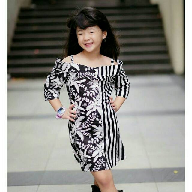 Dress Batik Lurik Putih Hitam Dress Sabrina Dress Batik Anak Murah Bagus Lucu Unik Modern Limited Shopee Indonesia